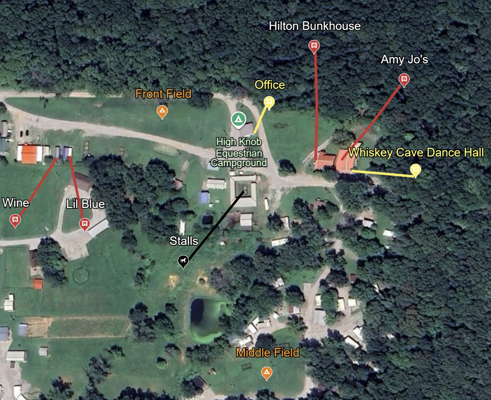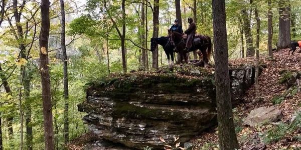 High Knob Ranch Campground is the only campground that has the River-to-River Trail running through the center of camp. We are located inside the Shawnee National Forest, with forest property on 2 sides of the campground and are the only campground that has 7 separate trails leading into the forest. From the center of camp, you're just a 5-minute horseback ride to 100 feet tall rock bluffs.